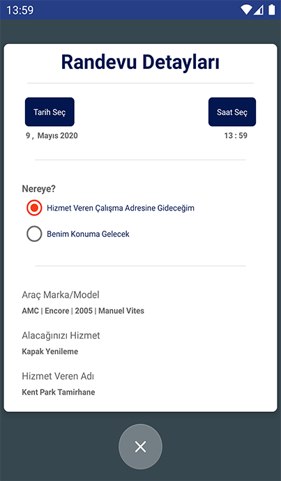 - Sonuçlar arasından en uygun olanı seçebilir randevu oluşturabilir ya da aracınıza çağırabilirsiniz.